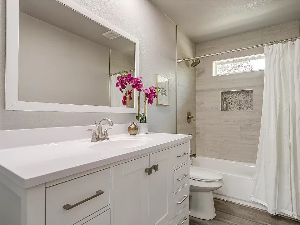 New LVP in bathrooms, hallway, kitchen, and living room